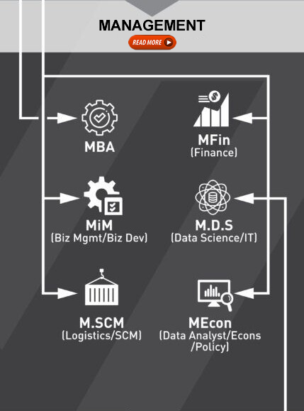 With each successive degree, you are literally preparing yourself of a higher degree of success. Have a look at the pathways we have mapped out for you based on our years of experience and observation of how our associated career placement professionals have been planning for our candidates. Click on the pulsating squares to read more.